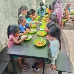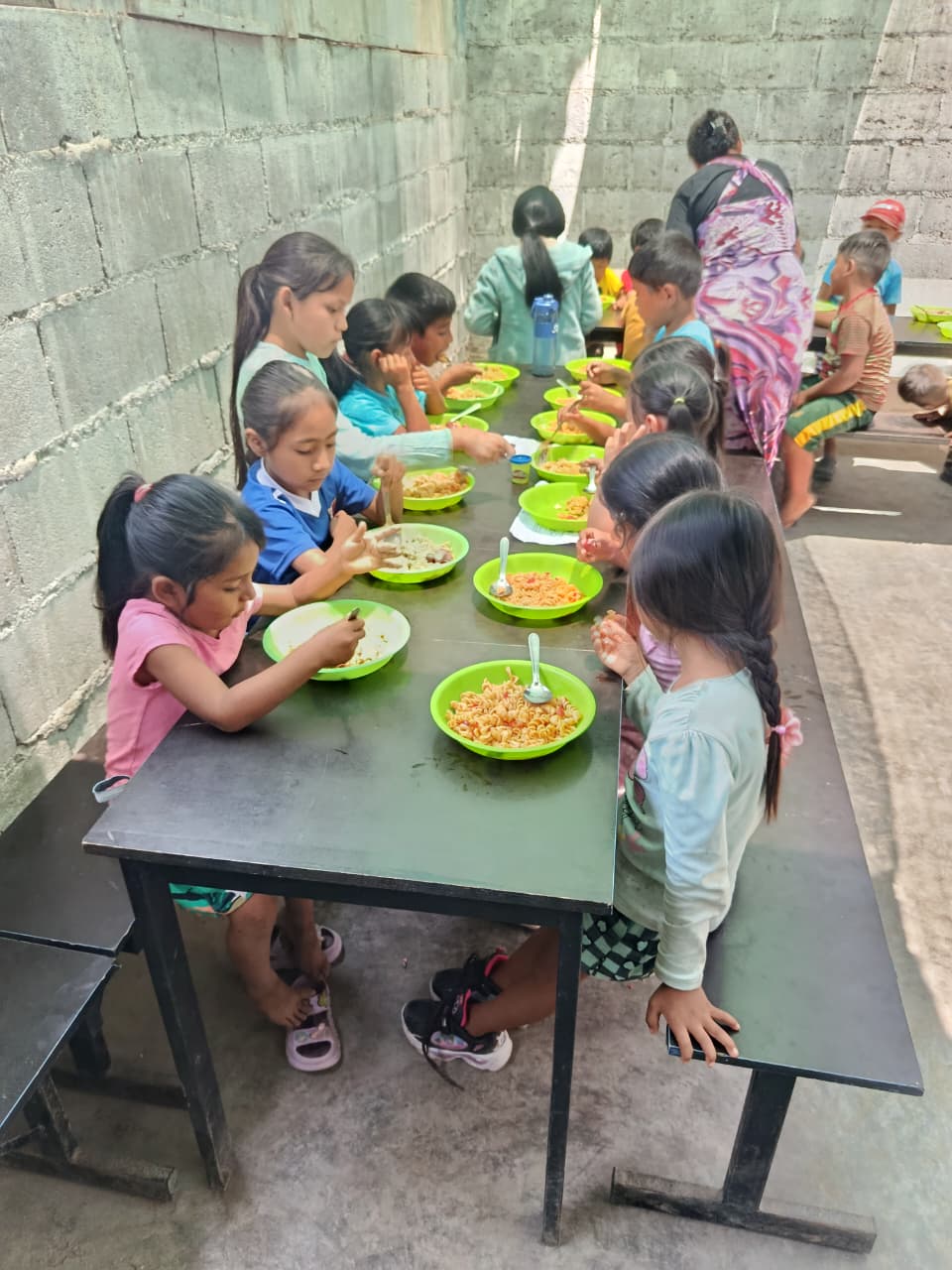Alimentação de crianças, atendendo necessidades físicas e espirituais;