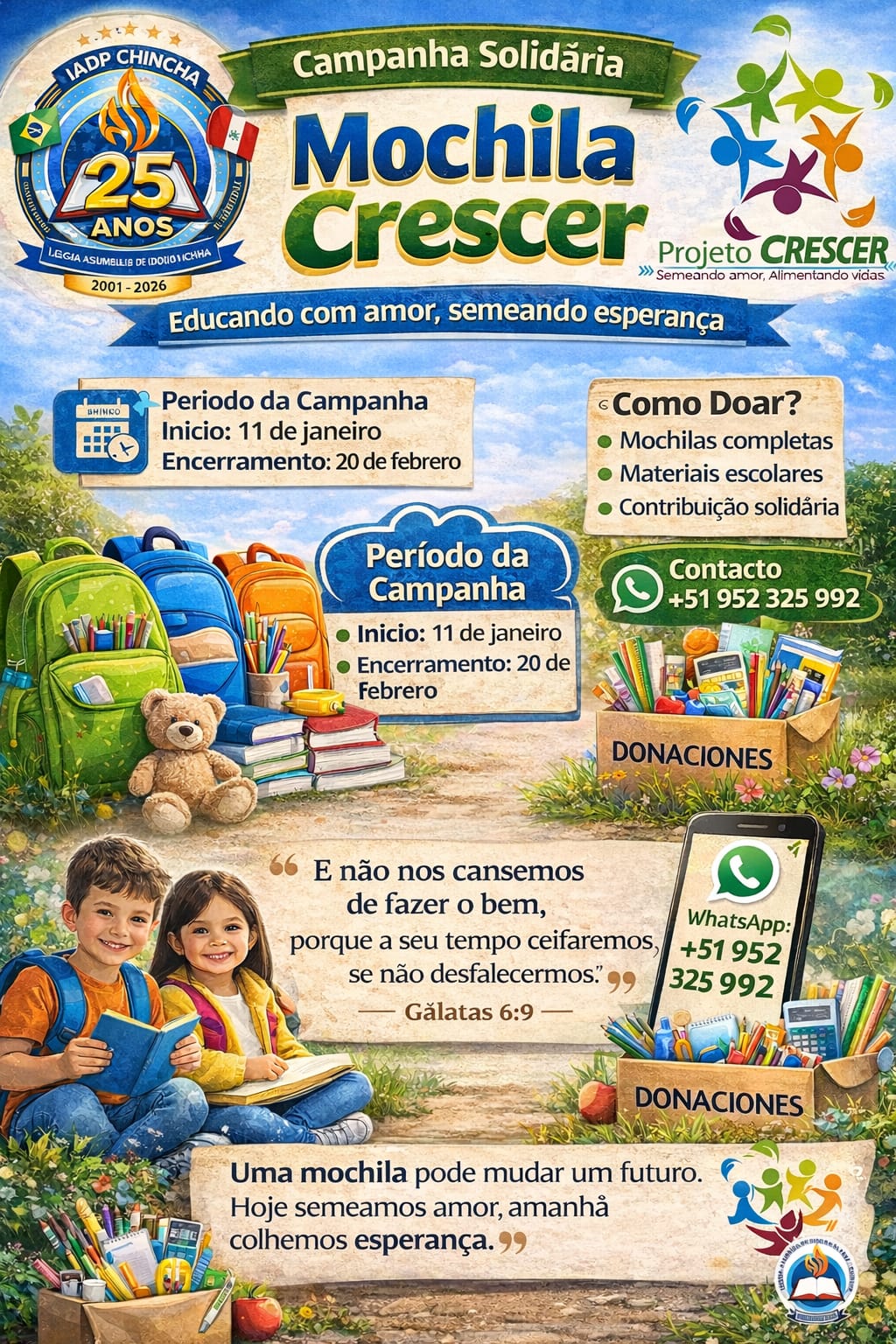 Mochila da Esperança, apoiando crianças em idade escolar;